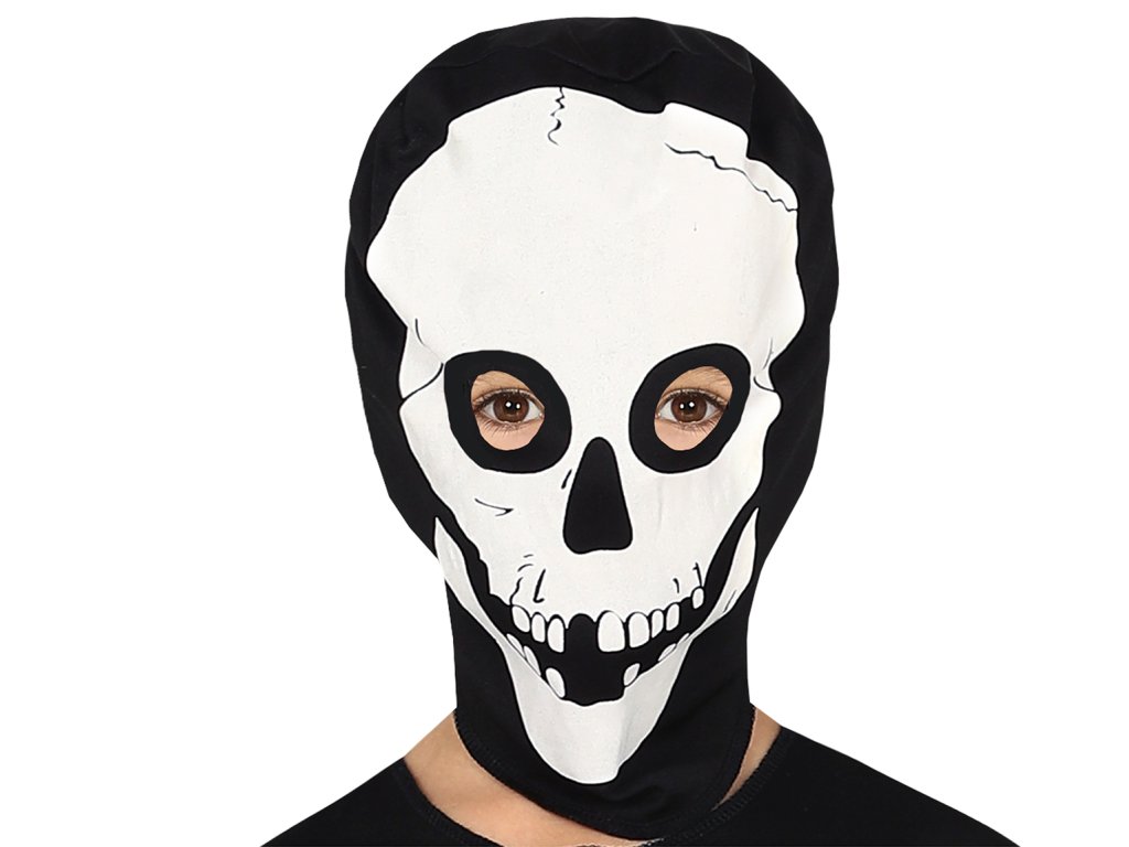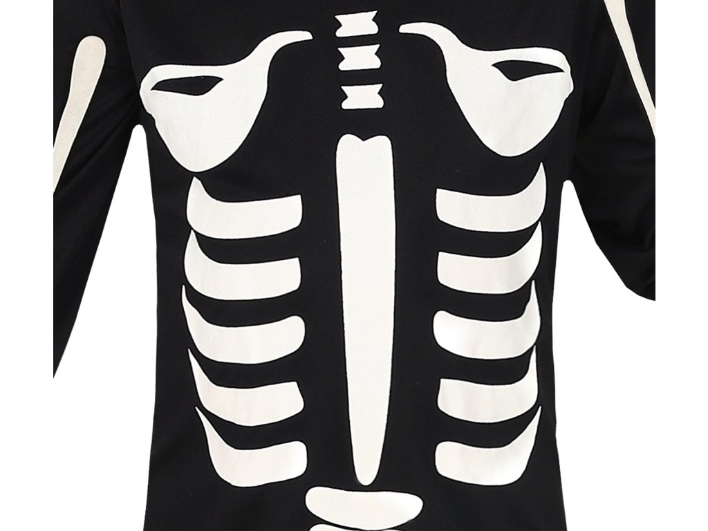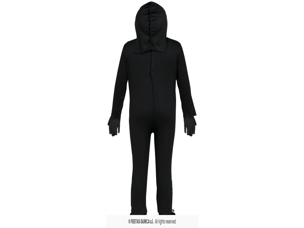 Black jumpsuit with face mask with white skeleton image.