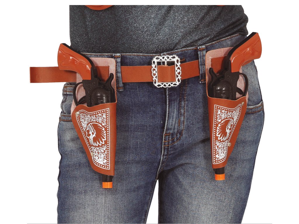 This fun carnival belt with two gun holsters and two pistols is the perfect accessory for cowboy costumes and other carnival outfits. The belt is made from lightweight and comfortable materials, ensuring ease of wear. The holsters are stylish and add an authentic look to your costume.