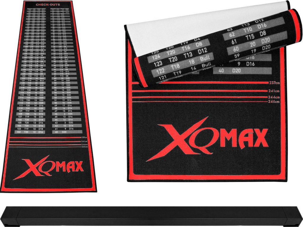 Koberec XQ Max je perfektní doplňek k terči. Vhodný pro domácí/rekreační i klubové využití. Perfektně sedne jak do obývacího pokoje, garáže nebo klubovny. Nově navržený koberec dodá hře profesionální atmosféru, která inspiruje. Koberec s horním motivem Check Out Mat. Tento šipkařský koberec je velmi odolný a díky vysoké kvalitě poskytuje optimální ochranu pro padající šipky. V balení najdete také odhodovou čáru.