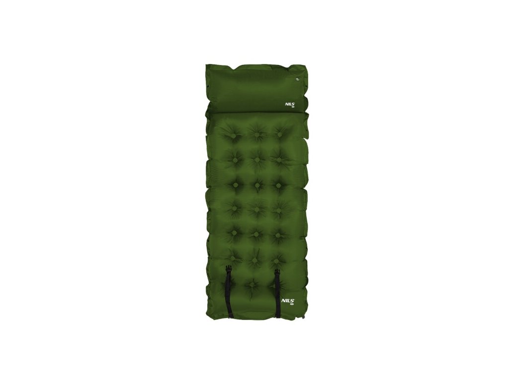 Samonafukovací karimatka NILS CAMP NC4018 zajistí kvalitní spánek během kempování a dovolených pod stanem. Podložka je ale vhodná i k vodě a všude tam, kde si chcete příjemně poležet. Samonafouknutí zajišťuje vnitřní, pěnový materiál s otevřenými póry. Po povolení ventilu do sebe nasává vzduch a dostává se tak do původního stavu. Závěrem je ještě potřeba podložku dofouknout na požadovanou tvrdost. Skládání se provádí otevřením ventilu a srolováním od opačné strany, než je ventil. Karimatku poté zajistíme řemínky s přezkami a vložíme do dodávaného vaku. Na model NC4018 byl použit velice odolný polyester 190T potažený vrstvou PVC, tato kombinace zajišťuje vysokou odolnost a karimatka se dá položit i na nerovný povrch. Lemy karimatky jsou opatřeny druky, které umožňují spojit více matrací do jedné, veliké plochy, toto se hodí například k vyplnění podlahy ve stanu. Polštářek není odnímatelný a oproti karimatce není vyplněn pěnou a je potřeba ho celý nafouknout. Součástí balení je také opravná sada, která se hodí v případě poškození.