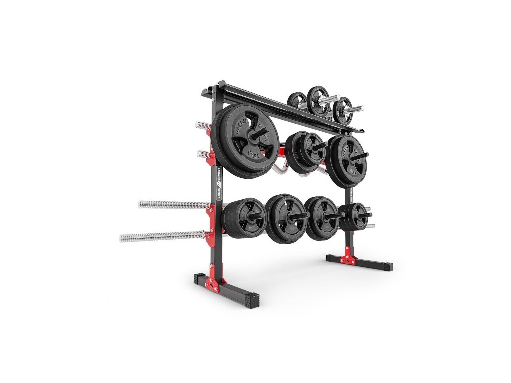 Stojan na osy a závaží Marbo Sport MH-S209 je funkční a bezpečné řešení pro odkládaní kotoučů, činek a vzpěračských os o celkové hmotnosti až 300 kilogramů.