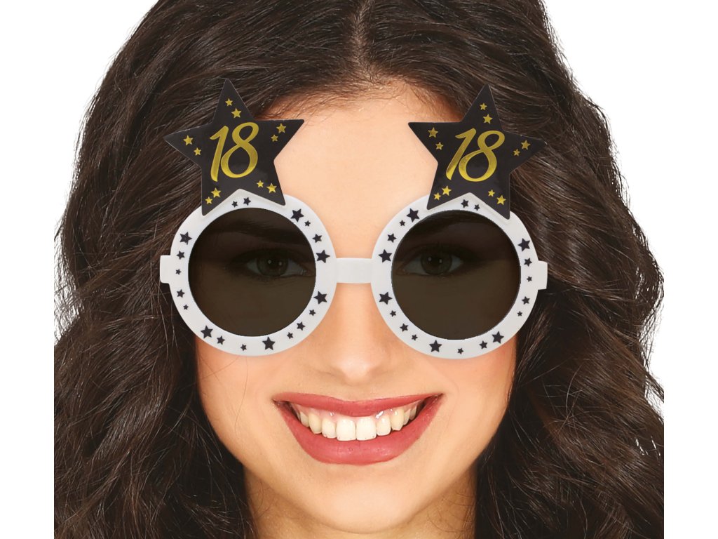 Veselé narodeninové okuliare s číslom 18! Biele plastové okuliare s čiernymi sklami a hviezdičkami dodajú vašej párty tú správnu atmosféru. Ideálny lacný kostýmový doplnok na oslavy, karnevaly a tematické večierky.
