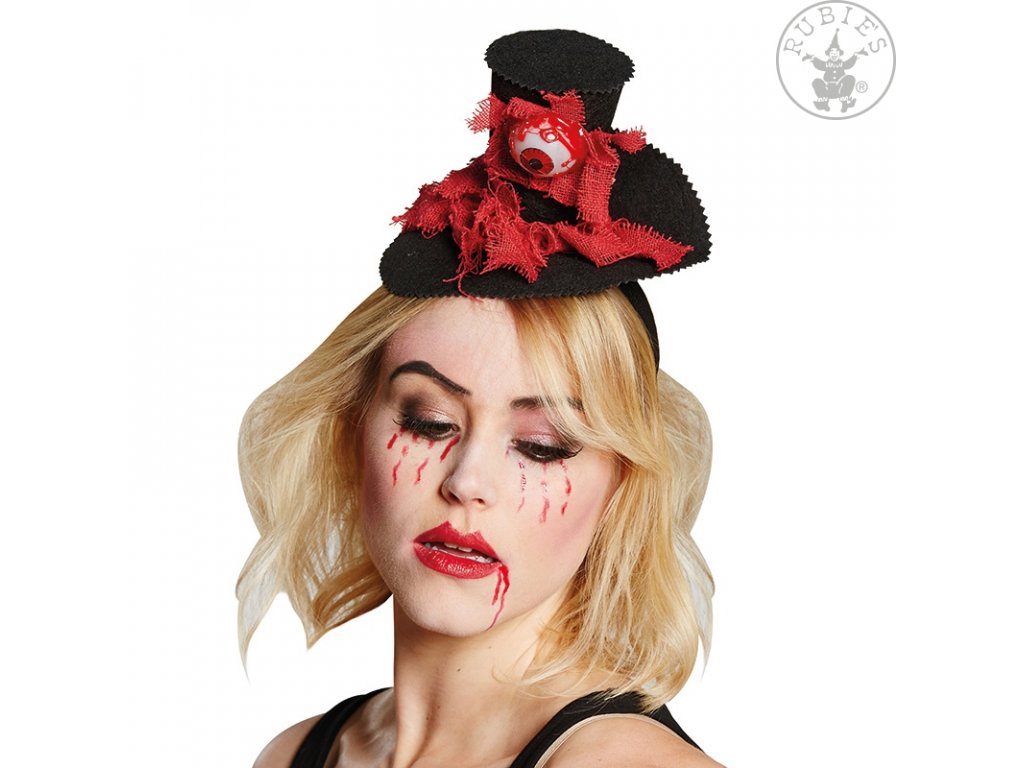 Hororový minicylindr na čelence s vydloublým zkrvaveným okem.