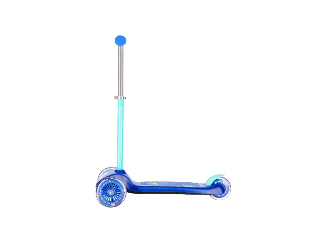 Přední kolečka o průměru 125 milimetrů a zadní kolečko o průměru 100 milimetrů jsou osazeny barevnými LED diodami. Svítící LED diody slouží jako zajímavý, vizuální prvek, zvyšují zájem dětí a v neposlední řadě zvyšují viditelnost koloběžky například za šera. Kolečka svítí automaticky během jejich otáčení. Dále jsou kolečka osazeny ložisky ABEC 5 pro pohodovou jízdu. Zadní blatník slouží jako nášlapná brzda pro bezpečné zastavení koloběžky.