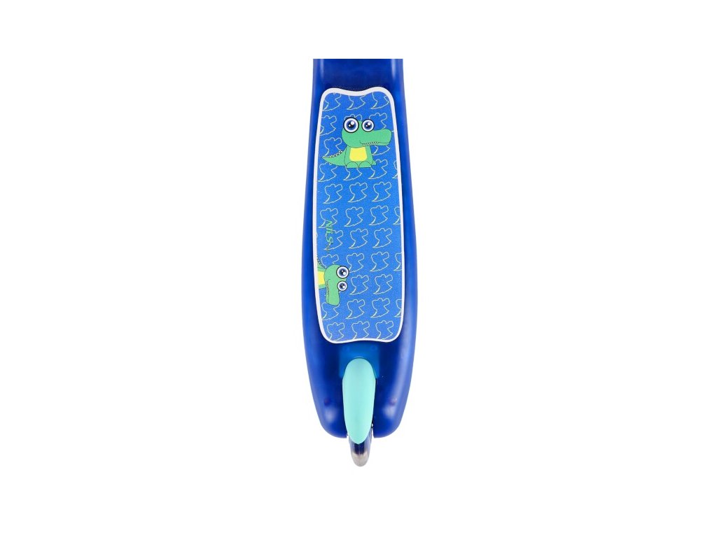 Prostorné stupátko nabízí dostatek prostoru (29 x 11,5 cm) pro obě nohy a zároveň učí dítě zaujmout správnou polohu pro jízdu na koloběžce. Celoplastové stupátko je v prostoru pro boty opatřeno griptapem v zábavném designu. Bočnice stupátka jsou osazeny barevnými, blikajícícmi LED diodamy, které jsou napájeny pomocí tří mikrotužkových baterií (AAA/LR03), ty je potřeba zakoupit samostatně.