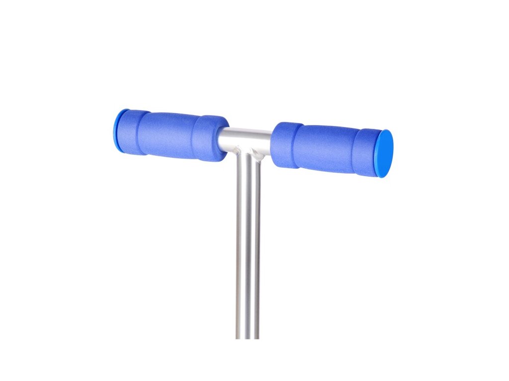 Teleskopická řídítka jsou výškově nastavitelná do 3 poloh (57 - 62 - 67 cm od země). Změna nastavení výšky se provádí uvolněním objímky, stisknutím pojistného čepu a vysunutím, nebo zasunutím vnitřní tyče řídítek. Pro úsporu místa lze řídítka demontovat - k tomu je potřeba stisknout tlačítko, které je přístupné ze spodní strany koloběžky. Tento systém sklápění je maximálně bezpečný a nemůže dojít k nechtěnému sklopení během jízdy. Gripy na řídítkách jsou vyrobeny z pěny, šířka řídítek je 25 centimetrů.